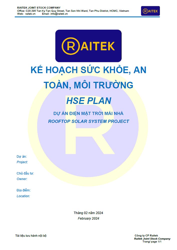 Kế hoạch quản lý sức khỏe – an toàn – môi trường (hse)/ health – safety – enviroment management plan (hse).
