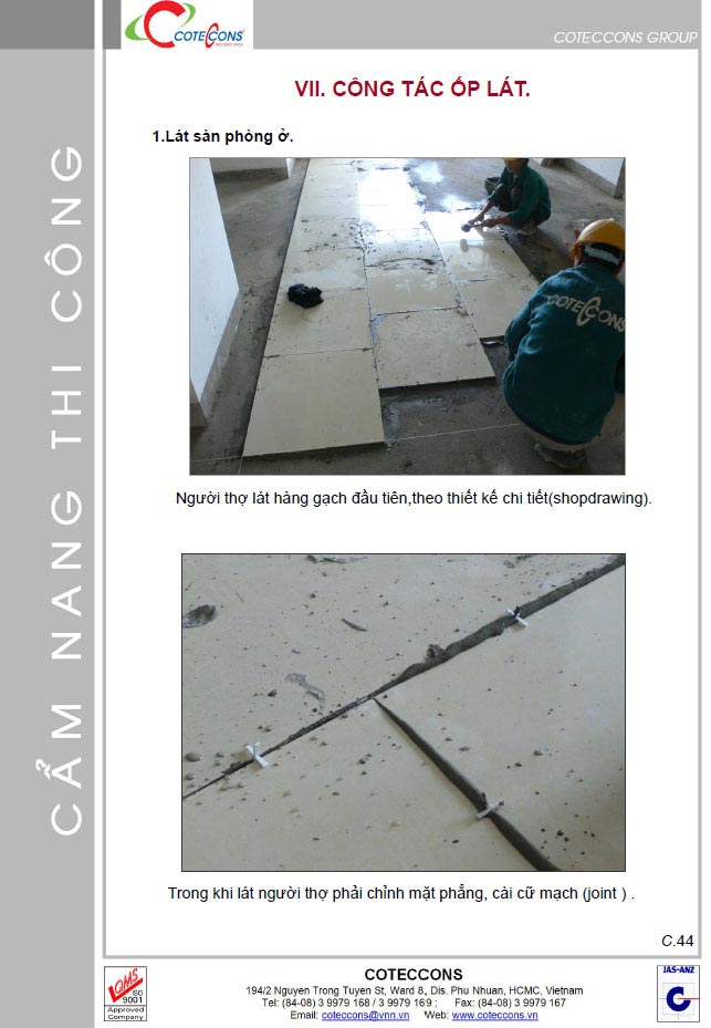 Cẩm nang thi công Phần C thi công hoàn thiện – Coteccons, Nội dung tài liệu:
