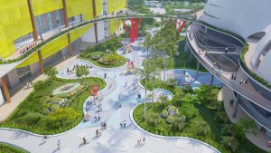 Công trình là một tổ hợp các không gian trải nghiệm thú vị theo hướng kiến trúc xanh, sinh thái, tiết kiệm năng lượng. Cung thiếu nhi là một viên ngọc ven hồ và công viên CV1. Toàn bộ công trình tạo thành một thể liên hoàn với hình khối mềm mại theo chủ đề “Ươm mầm và Phát triển”