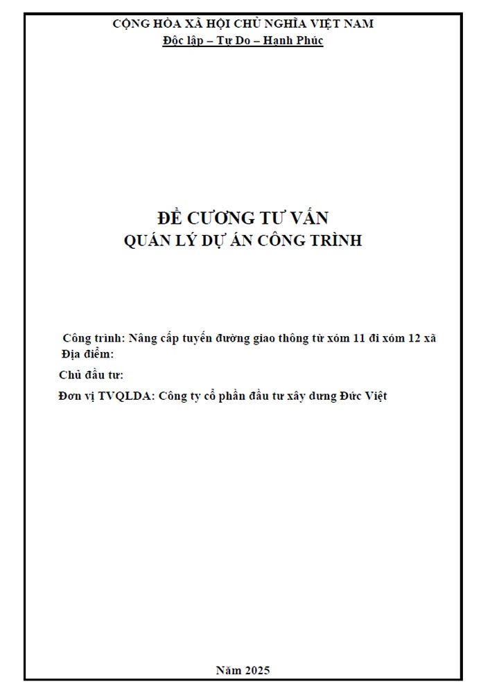 Đề cương tư vấn quản lý dự án công trình nâng cấp đường giao thông (TCV0696)