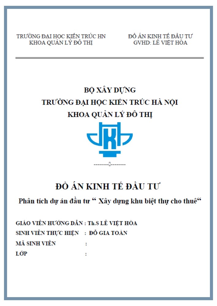 Đồ án kinh tế đầu tư – Phân tích dự án Xây dựng biệt thự cho thuê