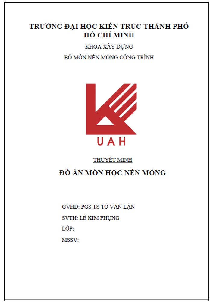 Đồ án môn học nền móng – Đại học Kiến trúc TP. Hồ Chí Minh (KCNM0213)