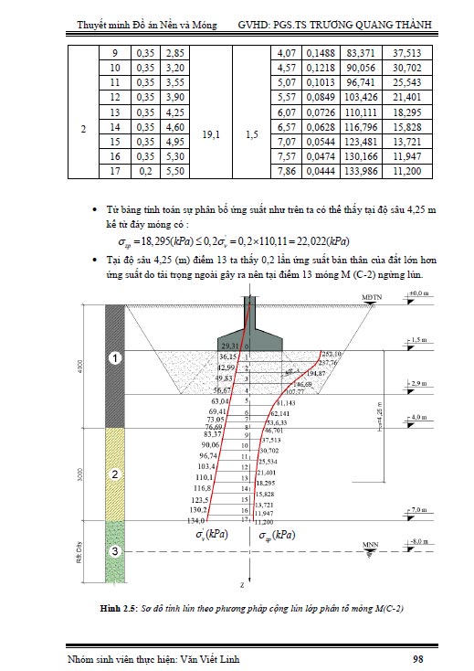 2.5 Kiểm tra điều kiện áp lực tại đỉnh lớp đất yếu