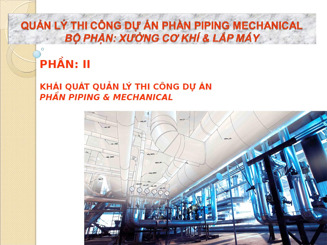 Quản lý thi công dự án phần Piping Mechanical – Bộ phận xưởng cơ khí và lắp máy (QLDA0074)