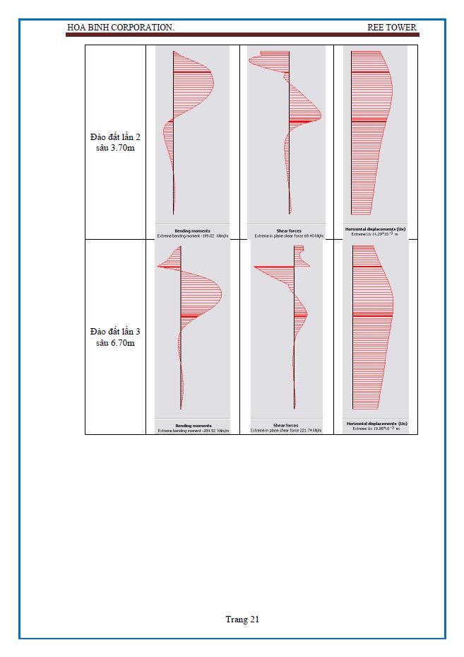 - Biểu đồ nội lực và chuyển vị ngang tường vây.