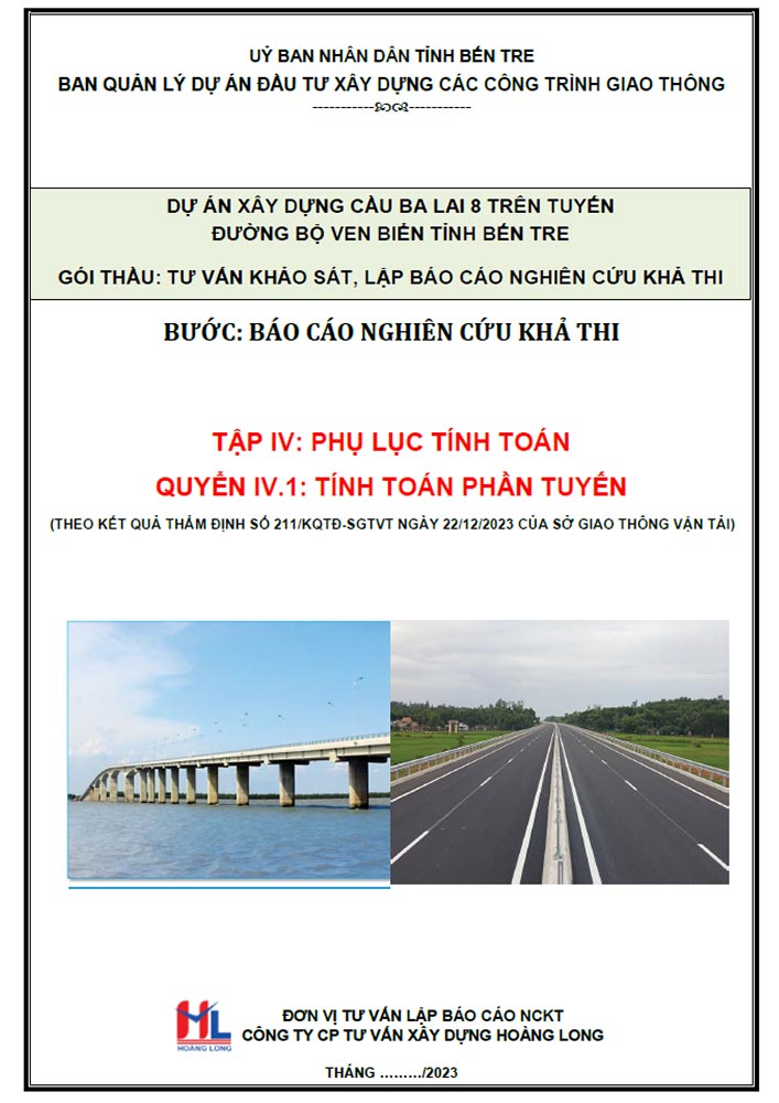 Tính toán phần tuyến – Dự án tuyến đường bộ ven biển (CTGT0198)